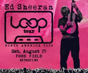 Ed Sheeran with special guests Myles Smith, Lukas Graham, and BIIRD will be performing at Ford Field in downtown Detroit on Saturday, August 29th, 2026 beginning at 5:30 pm as part of his "Loop Tour." Ticket and show information can be found here. You can register below for your chance to score pair of ticket...